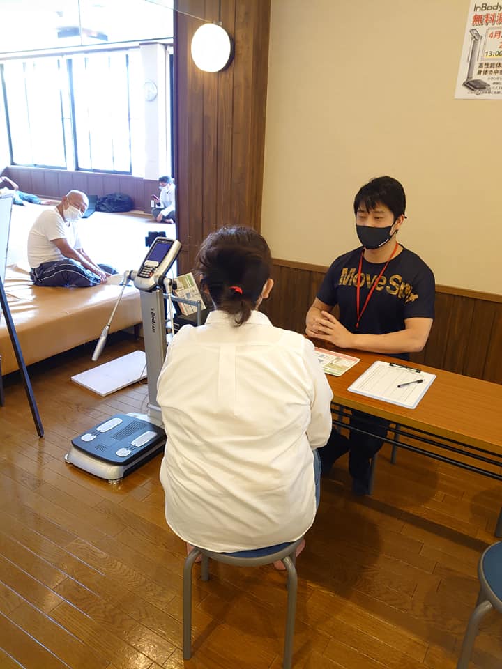 1Fレストスペースでは、100万円の高性能体組成計で身体の中の状況を見て、アドバイスする健康カウンセリングを
