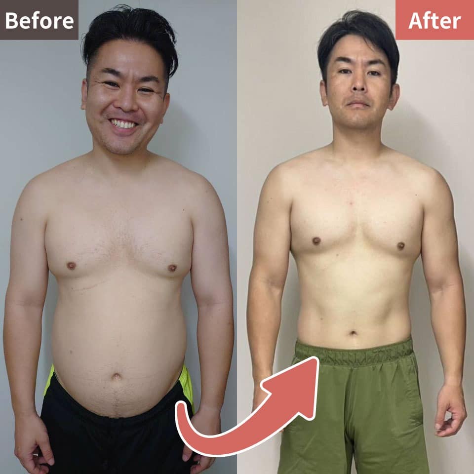 この写真の方は100キロ越えの体重から83キロまで落とした方ですが、何と筋肉量は減るどころかむしろ増えており、基礎代謝は上がりました。